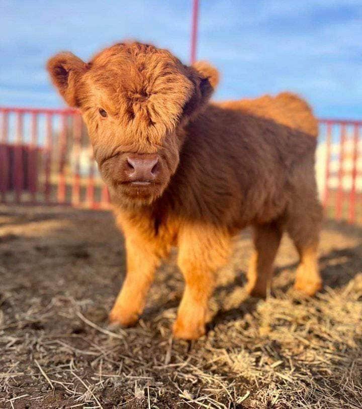 Halley was my first calf of 2024, born on February 28. She is out of Cheyenne, a Highland Longhorn cross, and Chewbacca 75% Highland 25% Belted Galloway. She certainly started the year out with a bang. Halley is absolutely gorgeous. She’s got the hair and the color. Halley is 67% Highland, carries red, and will be horned. She is curious, friendly, and ready to go when you are.